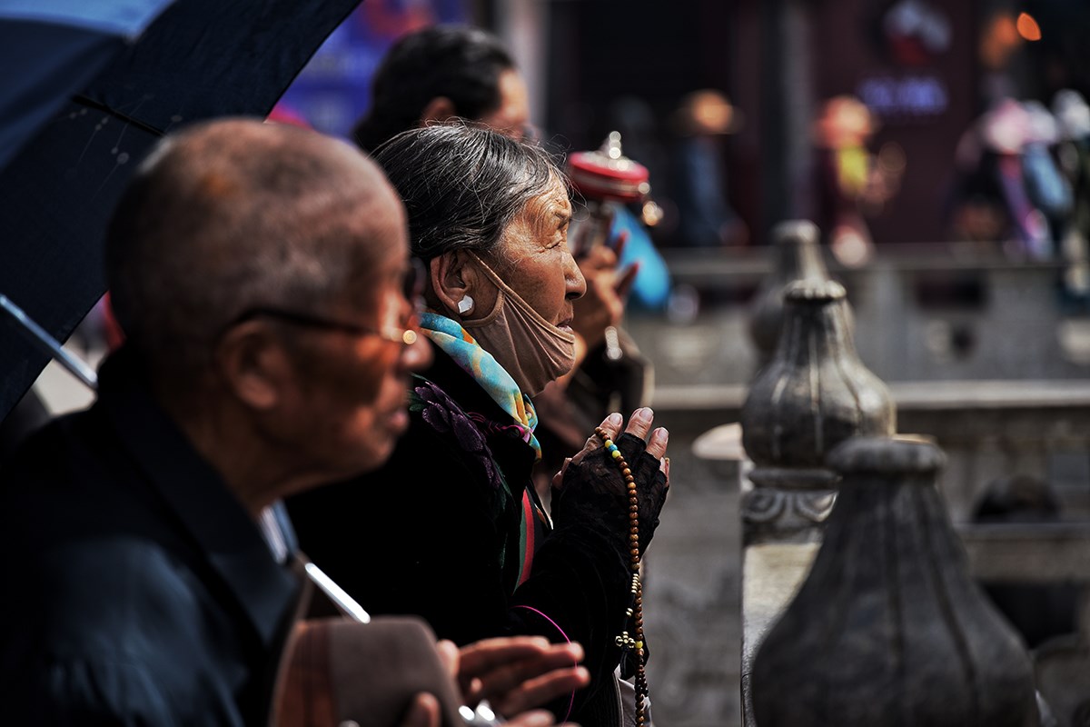 L'encens brûle devant le temple toute la journée, et les croyants se prosternent et adorent avec dévotion sur le sol en pierre bleue devant la porte et quittent les moulages profonds qui sont égaux à leur longueur corporelle. Des milliers de lampes à beurre sont toujours lumineuses, laissant des traces de temps et de pèlerins.